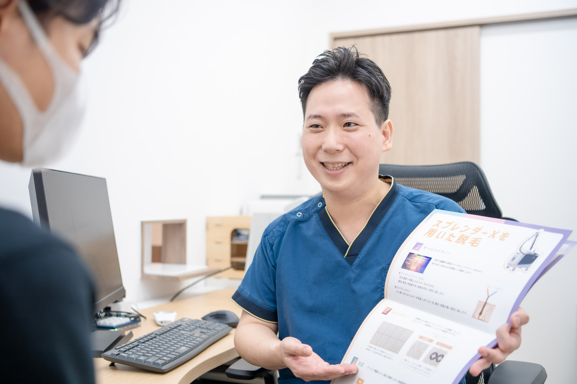 当院の医療脱毛は、痛みを最小限に抑えながら、肌にやさしく安全に施術できるのが特徴です。肌質や毛質に合わせた出力調整を行い、負担を軽減します。